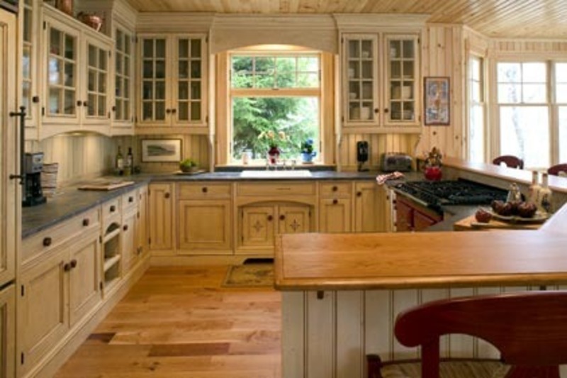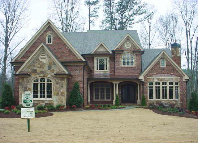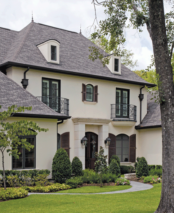 High pitched gable roofs, stucco stone exteriors. Window shutters round features and curved roof lines. More defined rooms. Less open concept.